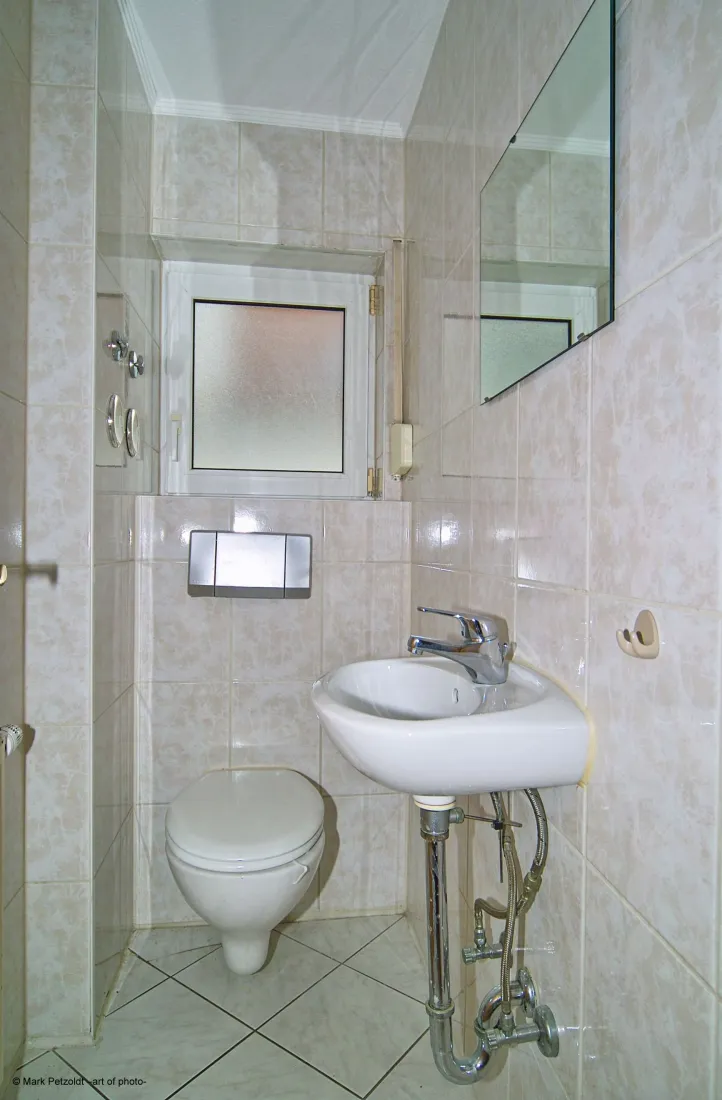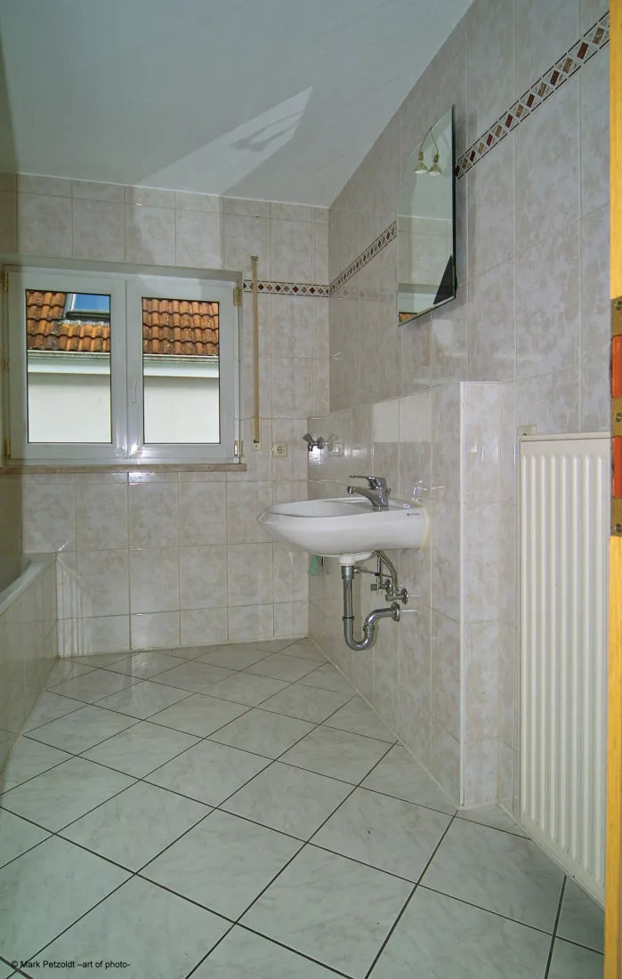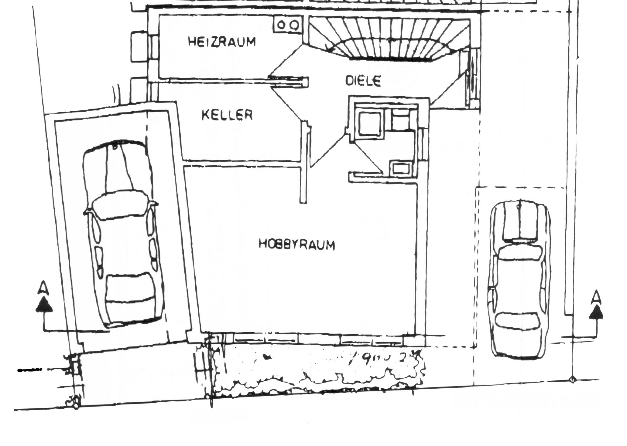 Im Erdgeschoos liegen Heizraum (Gas-Zentralheizung), Abstellraum und ein 1-Zimmer-Appartment mit Küchenzeile und Tageslicht-Duschbad.