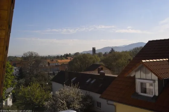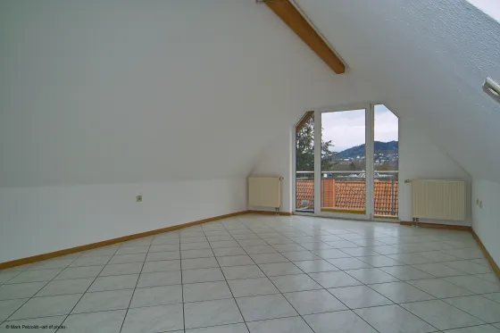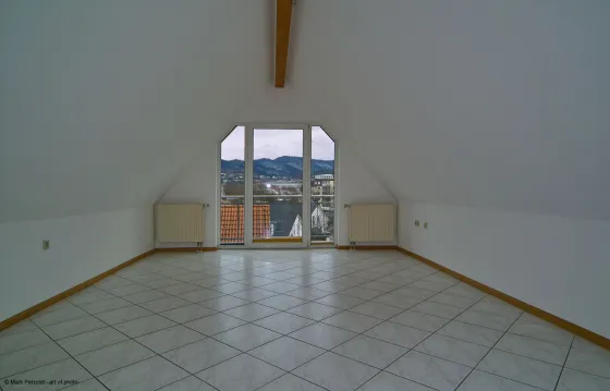 Im Dachgeschoss 2 ist ein weiteres Zimmer mit Balkon und einem kleinen Duschbad vorhanden. Den Ausblick von hier werden Sie geniessen.